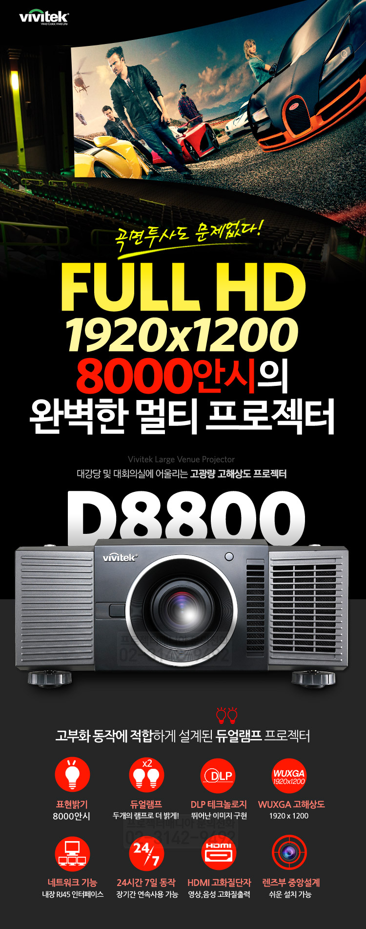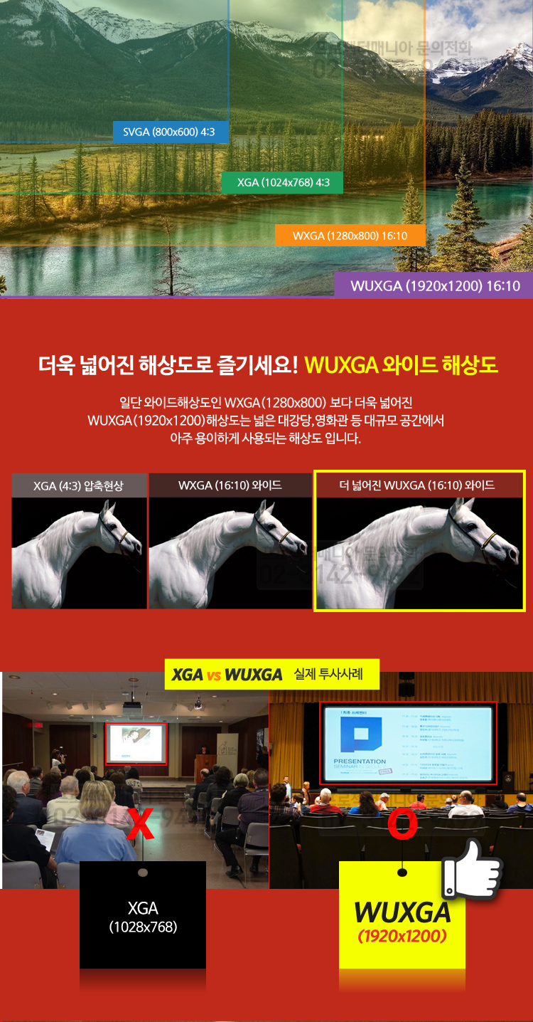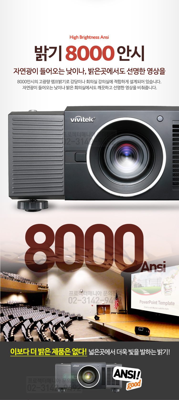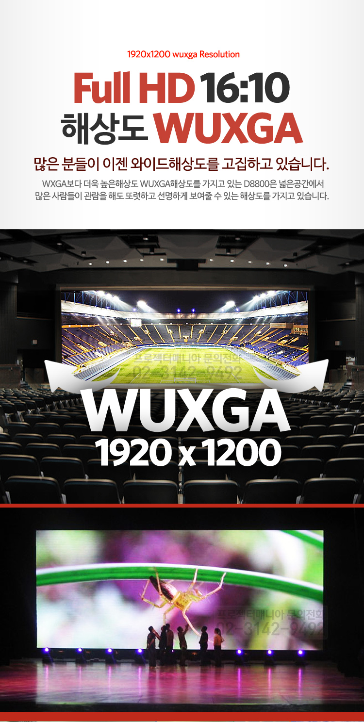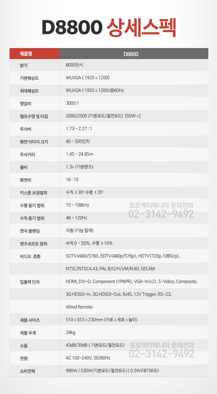 밝기 8000 / 해상도 WUXGA급 / 명암비 3,000:1