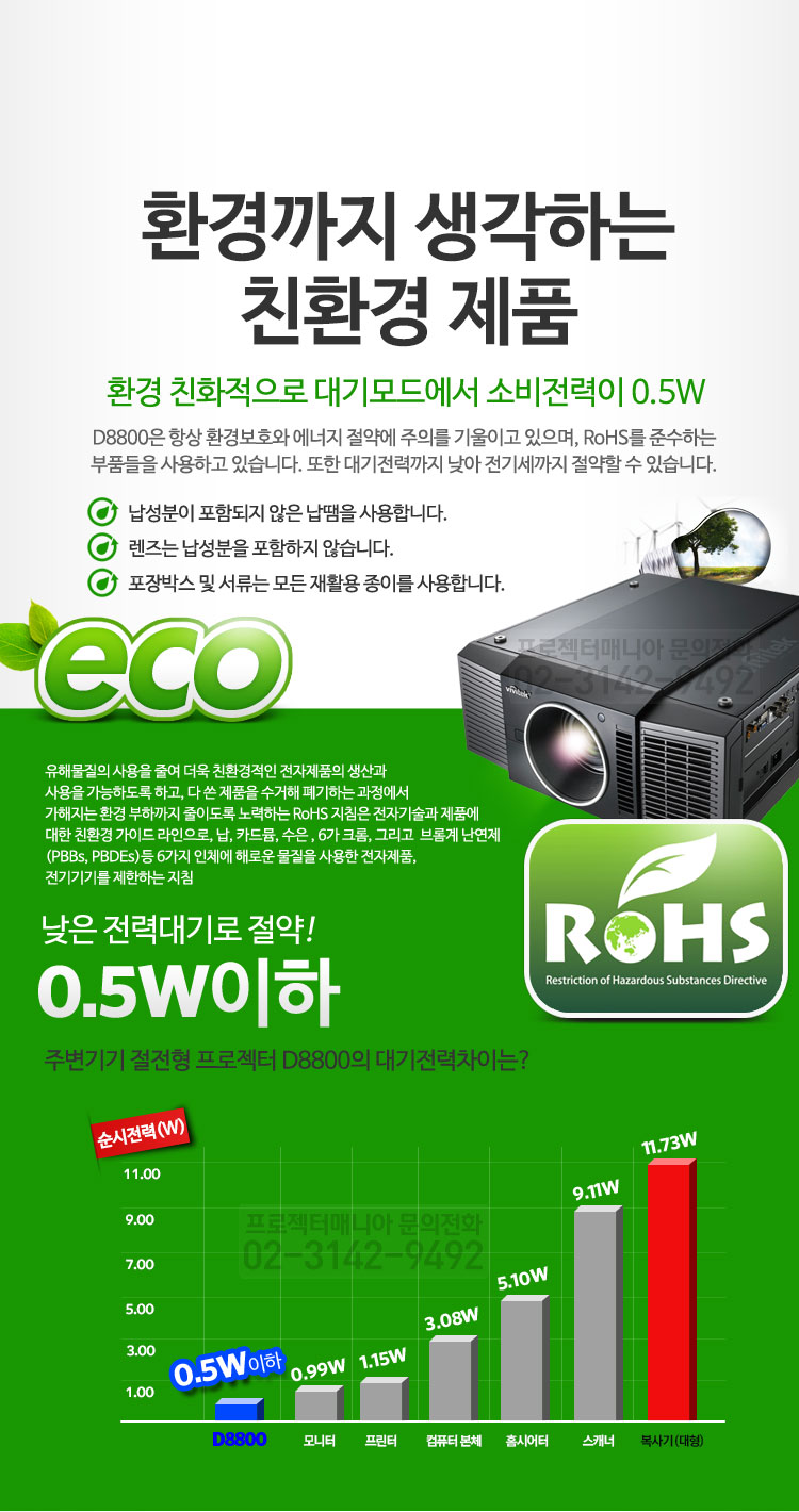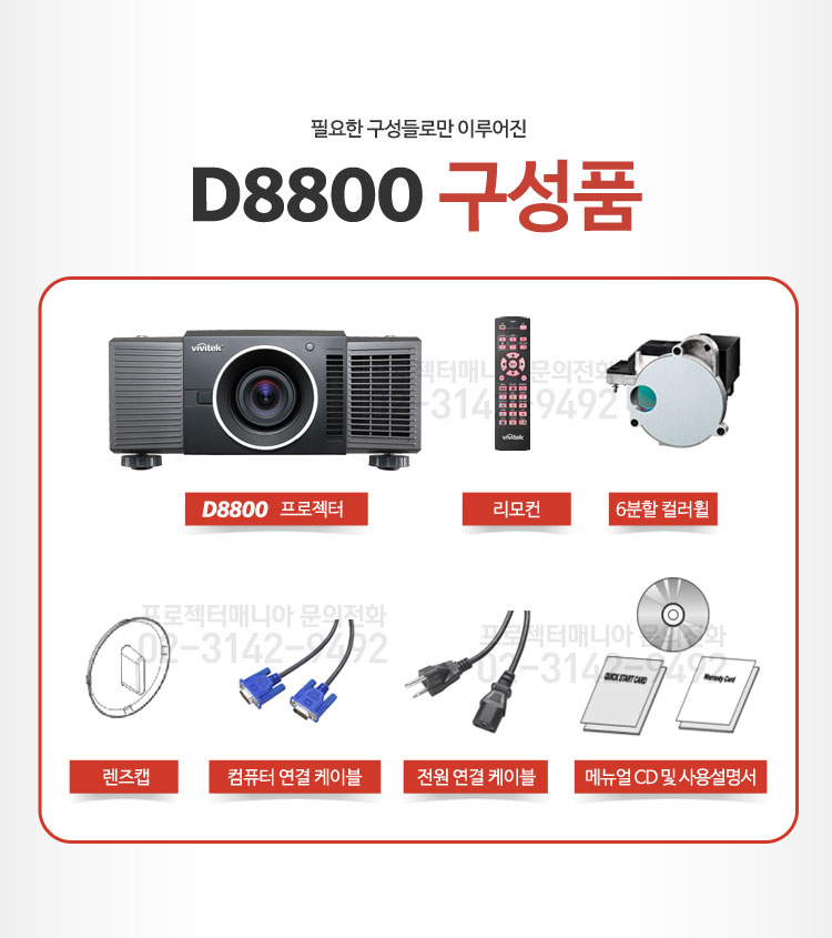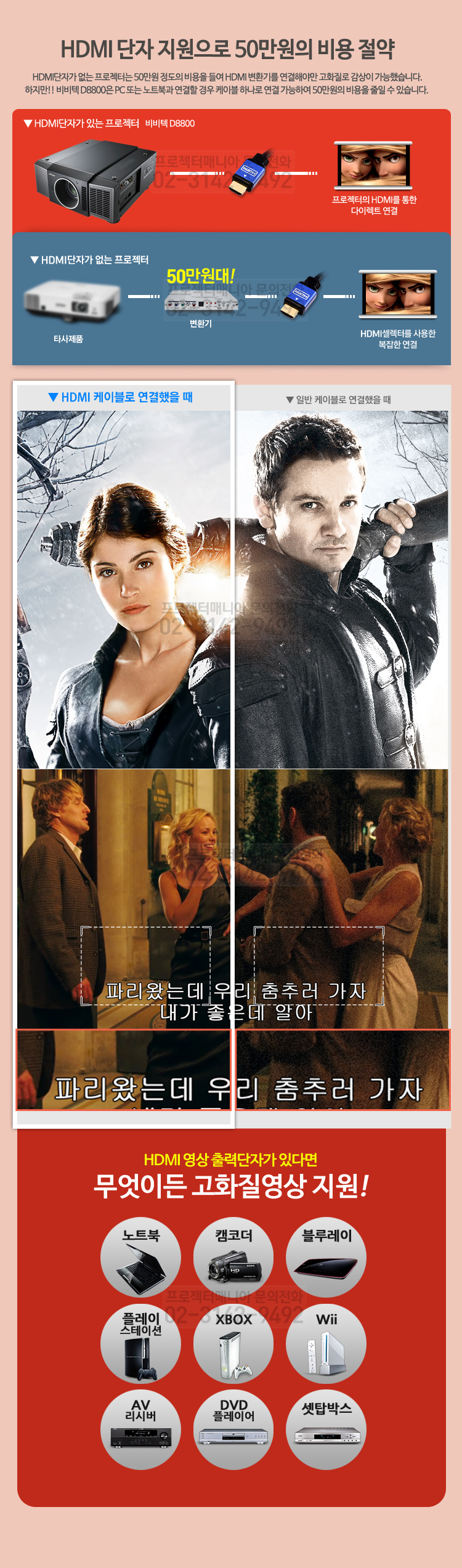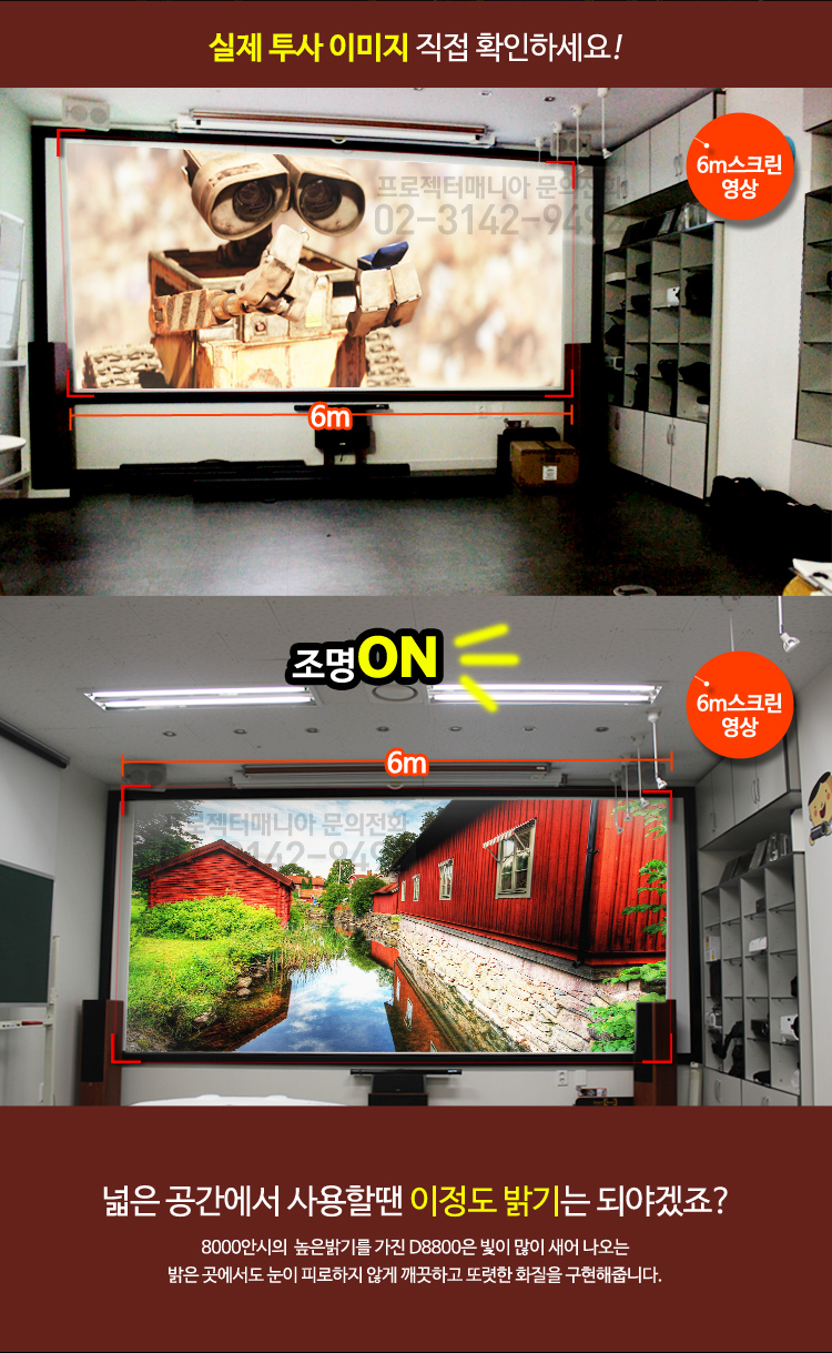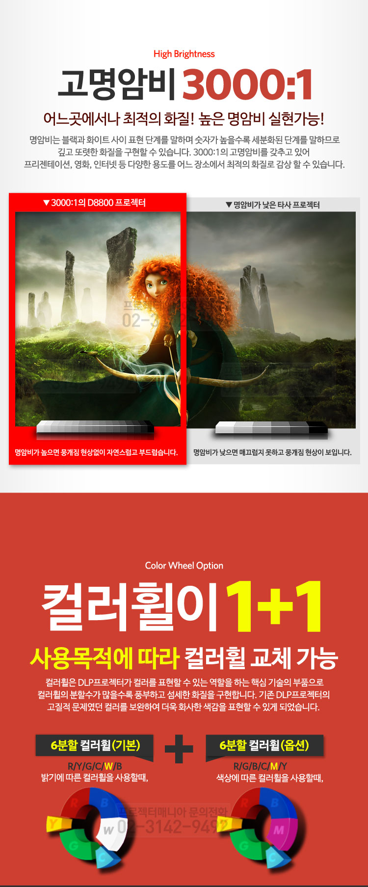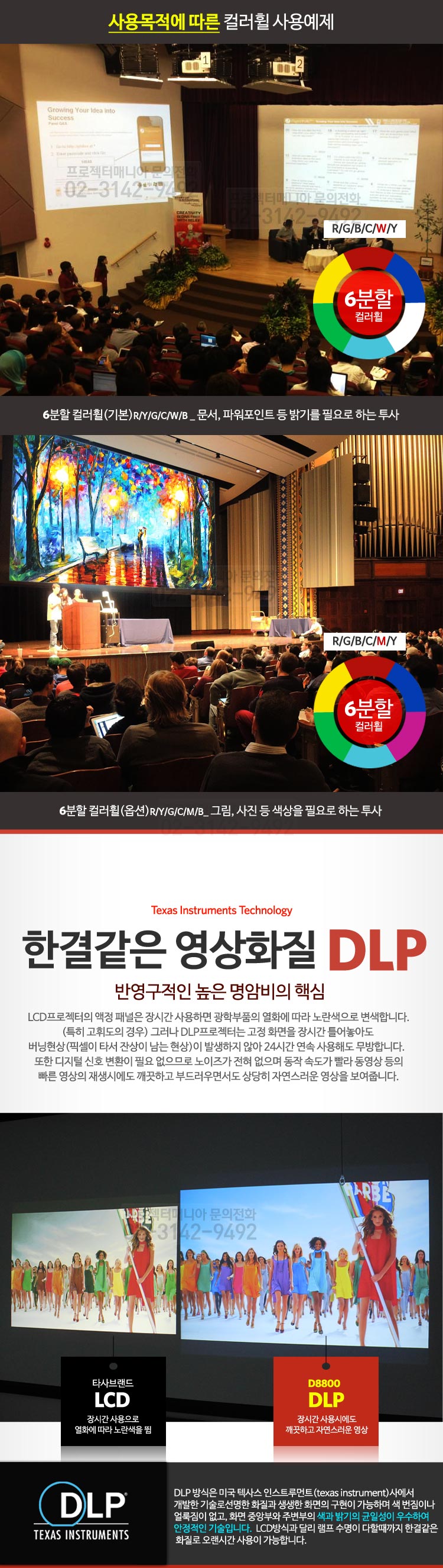 밝기 8000 / 해상도 WUXGA급 / 명암비 3,000:1