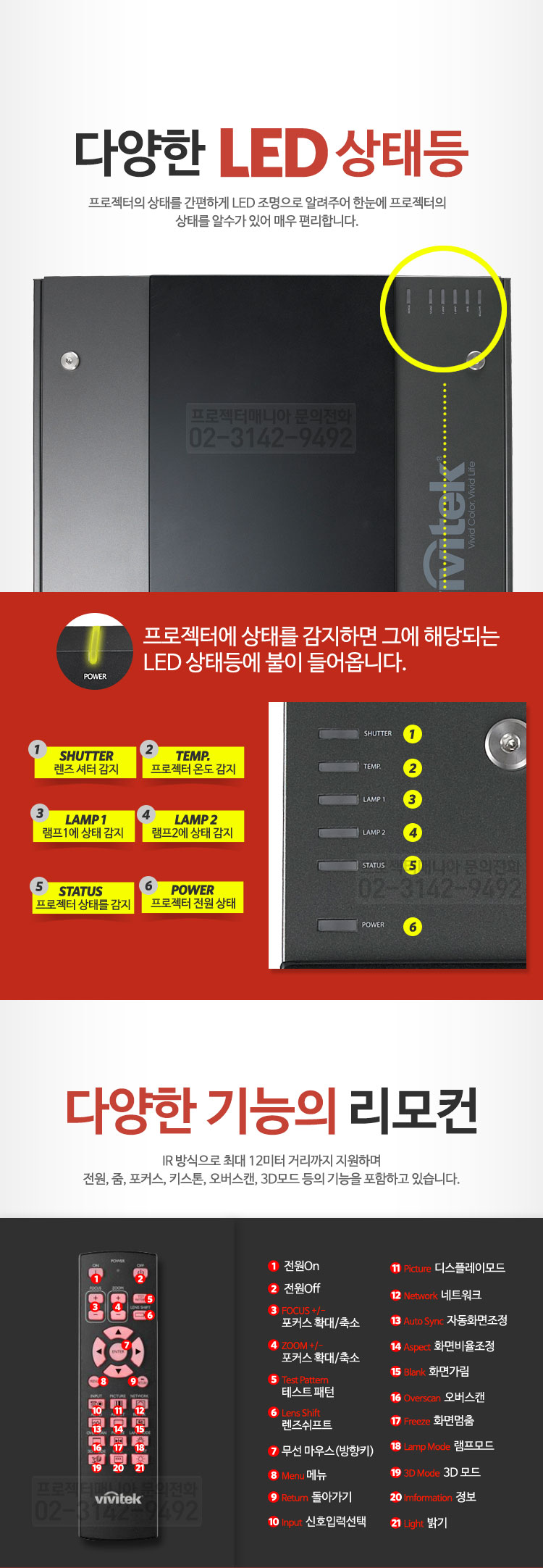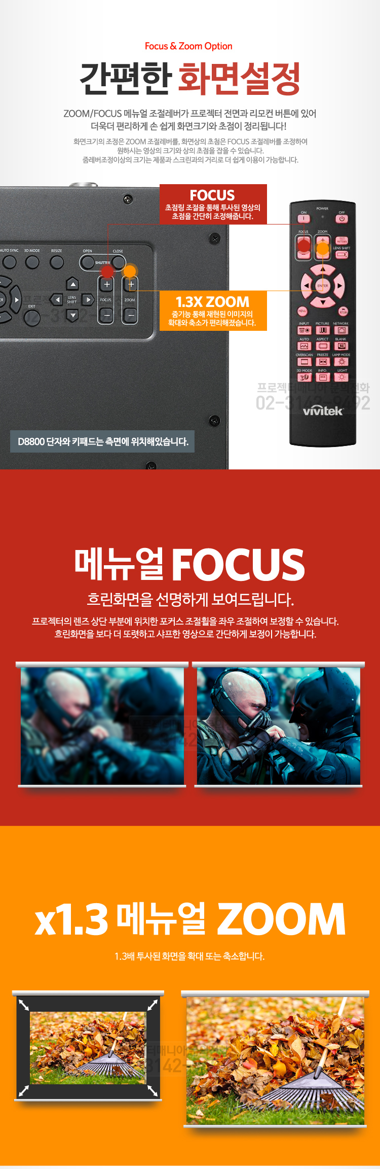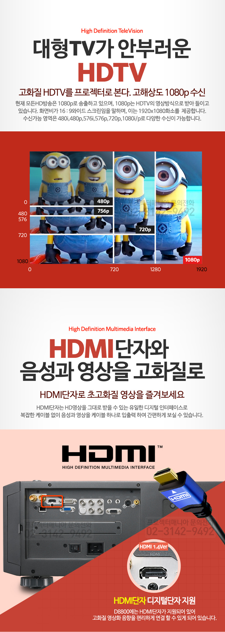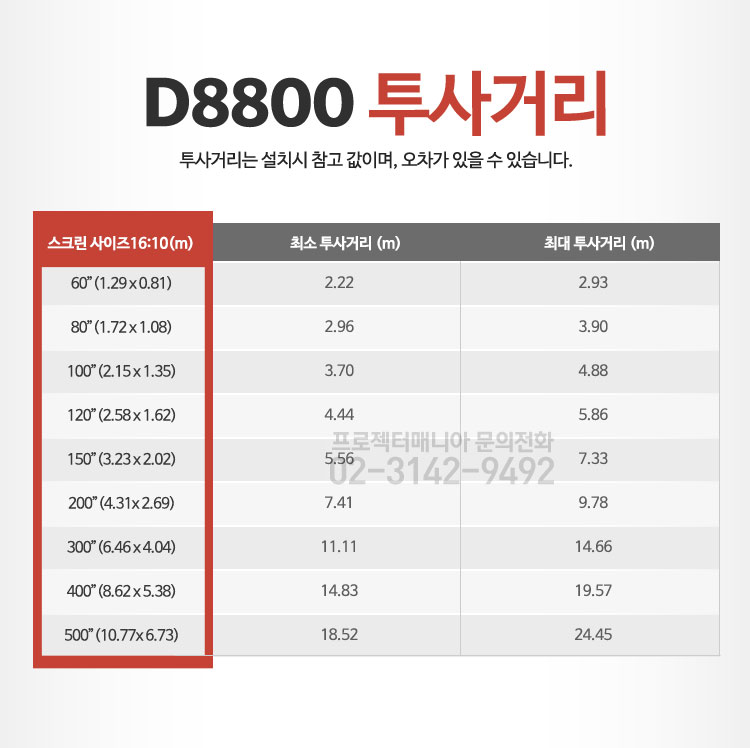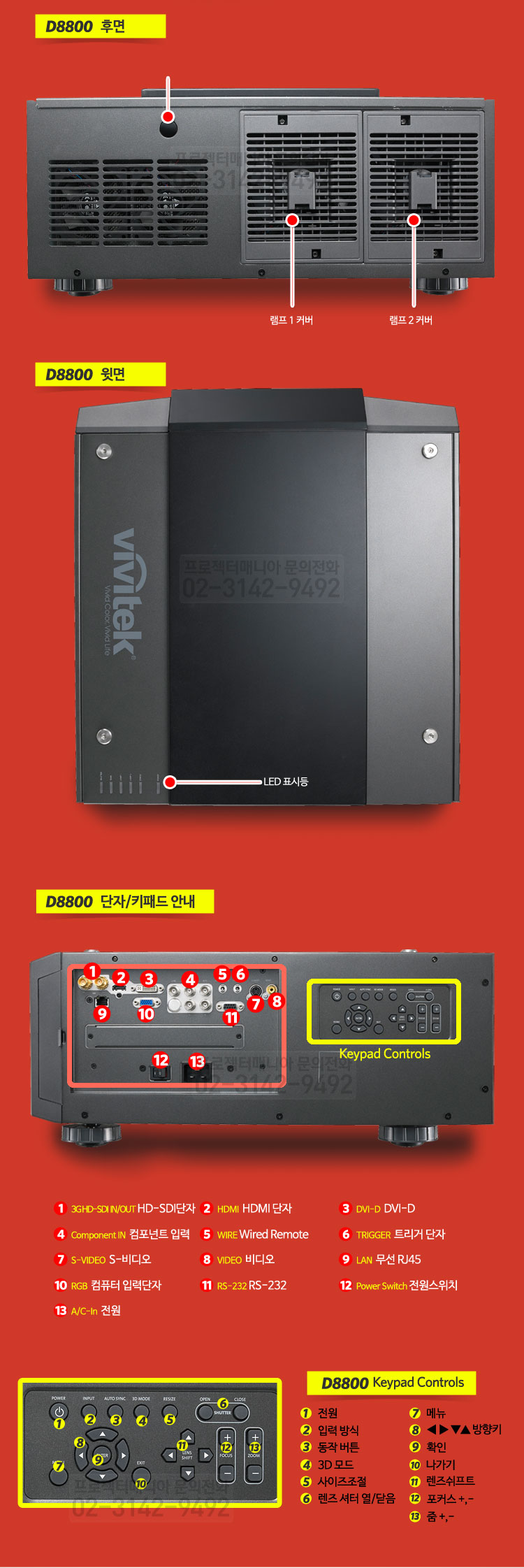 밝기 8000 / 해상도 WUXGA급 / 명암비 3,000:1