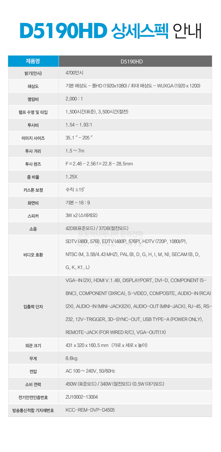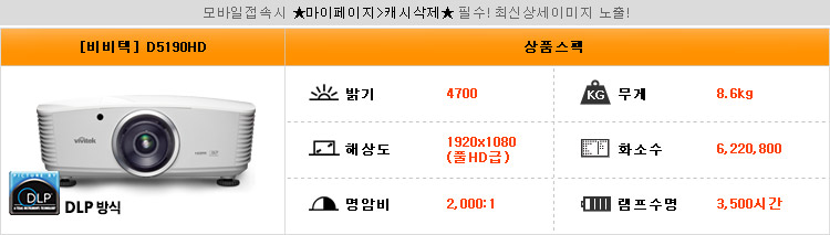 밝기 4700 / 해상도 풀HD급 / 명암비 2,000:1