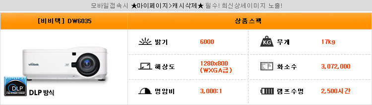 밝기 6000 / 해상도 WXGA급 / 명암비 3,000:1