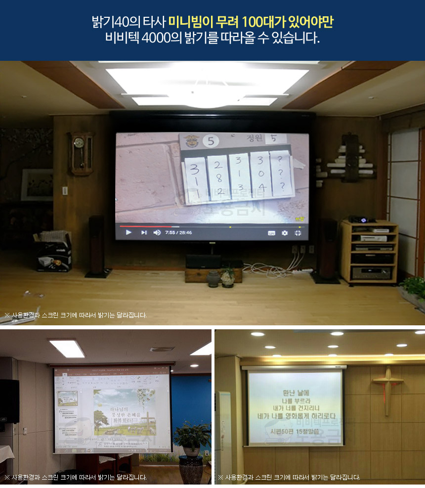 밝기 4000 / 해상도 SVGA급 / 명암비 30,000:1